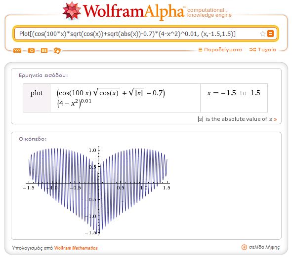 Η καρδιά του παραπάνω σχήματος δημιουργήθηκε χρησιμοποιώντας τον κώδικα του προγράμματος Mathematica. Για να παραμετροποιήσετε τη δική σας πατήστε ΕΔΩ