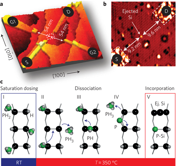 Η τάση που εφαρμόζεται στο ένα ζεύγος ηλεκτροδίων προκαλεί ηλεκτρικό ρεύμα στο κάθετο ζεύγος ηλεκτροδίων, με τη βοήθεια του μοναδικού ατόμου φωσφόρου στο μέσον.