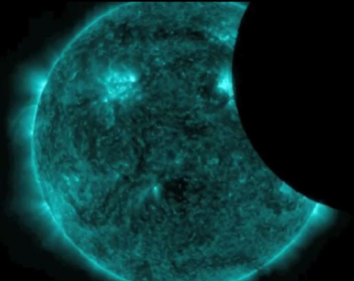 Νωρίτερα σήμερα, το Solar Dynamics Observatory (SDO – Ηλιακό Δυναμικό Παρατηρητήριο) κατέγραψε μια μερική έκλειψη του Ήλιου. Για 1 ώρα και 41 λεπτά, η Σελήνη έκανε ένα πέρασμα μεταξύ SDO και Ηλίου. Το βίντεο που ακολουθεί δείχνει την σημερινή μερική έκλειψη με τον Ήλιο να φαίνεται σε διάφορα ψευδο – χρώματα που αντιστοιχούν σε συγκεκριμένα μήκη κύματος. Κάθε μήκος κύματος αποκαλύπτει διαφορετικά χαρακτηριστικά της επιφάνειας του Ήλιου, π.χ. θερμοκρασία, και με τον τρόπο αυτό γίνεται η μελέτη του Ήλιου και των δραστηριοτήτων του.