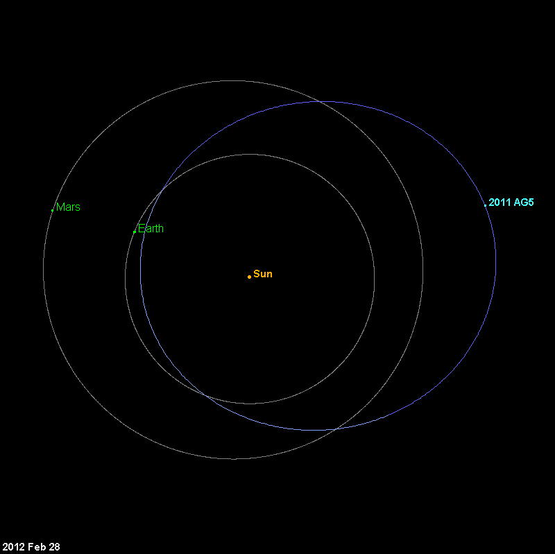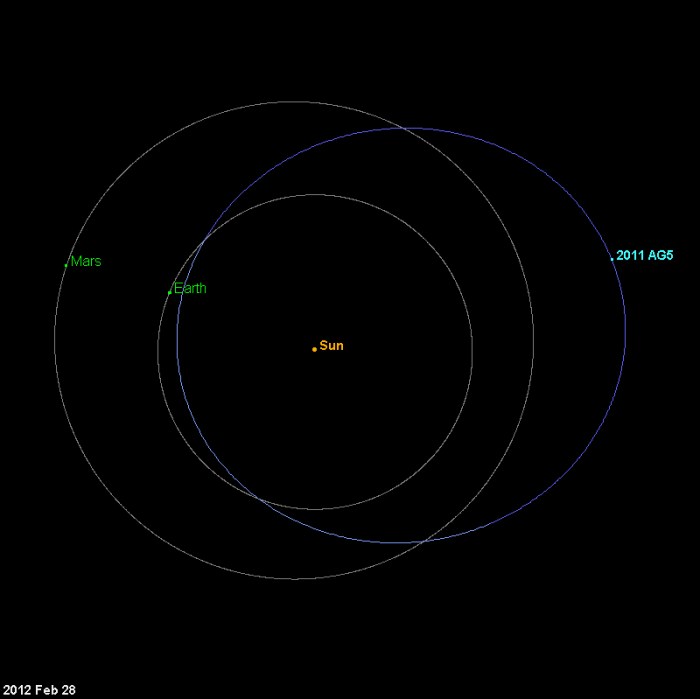 H NASA ανακοίνωσε ότι ένας αστεροειδής που θα πλησιάσει τη Γη σε 28 χρόνια αποτελεί κίνδυνο για τον πλανήτη μας. Ο 2011 AG5 έχει διάμετρο 140 μέτρα και σύμφωνα με τους υπολογισμούς των επιστημόνων θα φτάσει στη διαστημική μας γειτονιά στις αρχές του 2040. Η εκτίμηση των ειδικών είναι ότι υπάρχει μία στις 625 πιθανότητες ο αστεροειδής να πέσει στον πλανήτη μας και αν τελικά αυτό συμβεί η πτώση του θα γίνει στις 5 Φεβρουαρίου του 2040……