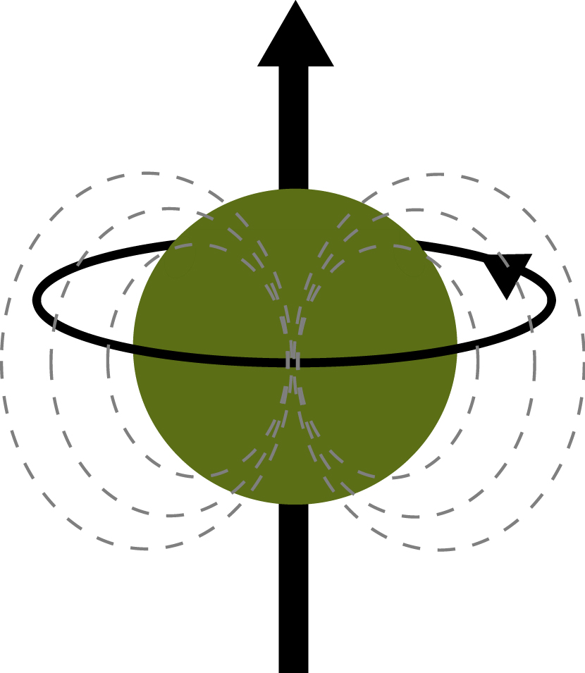 H κλασική εικόνα του ηλεκτρονίου ως φορτισμένης σφαίρας που περιστρέφεται γύρω από τον άξονά της δημιουργώντας μαγνητικό πεδίο