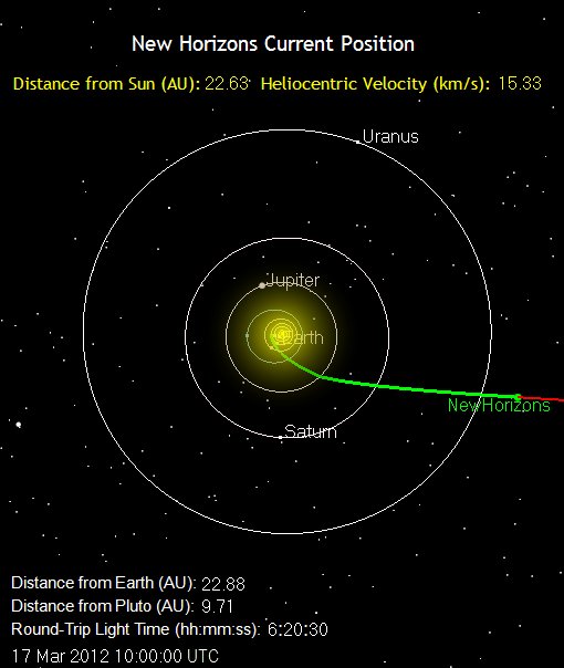 Το διαστημικό σκάφος New Horizons εκτοξεύθηκε στις αρχές του 2006, με στόχο την εξερεύνηση του Πλούτωνα, κινείται με μεγάλη ταχύτητα (15 χιλιόμετρα ανά δευτερόλεπτο – με αυτή την ταχύτητα διασχίζει κανείς τις Ηνωμένες Πολιτείες περίπου σε 5 λεπτά!)