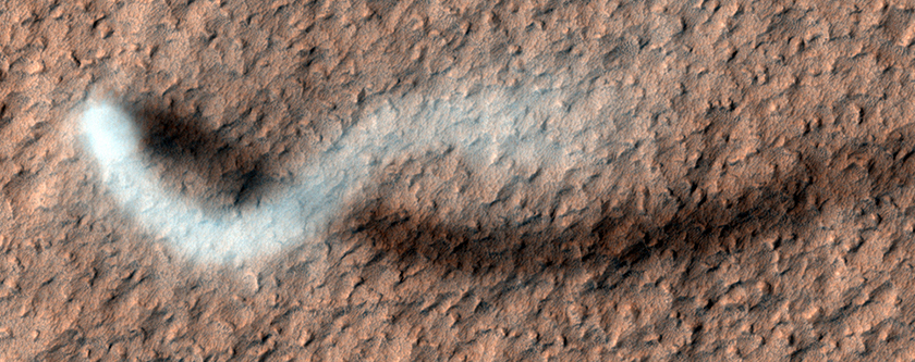 Μια από τις εικόνες που συνέλαβε η κάμερα – και έκανε τον γύρo του κόσμου πριν από δυο εβδομάδες – ήταν ένας Οφιοειδής Ανεμοστρόβιλος Σκόνης στην επιφάνεια του Άρη.