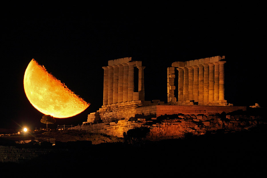 Η Σελήνη και ο ναός του Ποσειδώνα στο Σούνιο. Μια εκπληκτική φωτογραφία του Χρήστου Κωτσιόπουλου, στις 15/3/2012 και ώρα 2:03 πμ