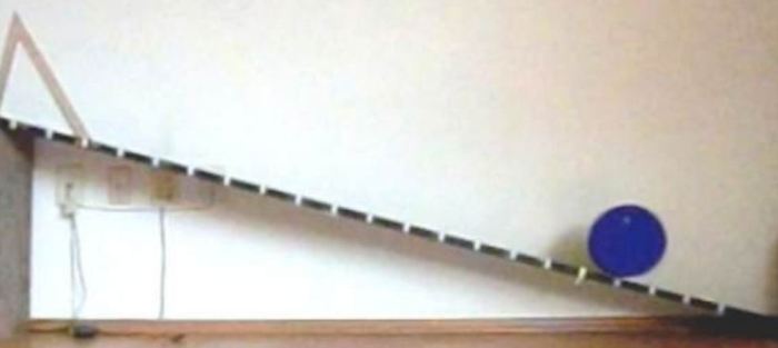 Δεν είναι οφθαλμαπάτη, συμβαίνει στην πραγματικότητα. Ο κύλινδρος χάνει την επαφή του με το κεκλιμένο επίπεδο γιατί το κέντρο μάζας του κυλίνδρου δεν βρίσκεται πάνω στον γεωμετρικό άξονα του κυλίνδρου. Πρόκειται για μια περίπτωση που σπάνια αναλύεται στα βιβλία κλασικής Μηχανικής (στο πρόβλημα 5, σελ. 103, Mechanics – L. D. Landau and E. M. Lifshitz εξετάζεται μια τέτοια περίπτωση κύλισης, αλλά σε οριζόντιο επίπεδο). Μπορείτε να διαβάσετε την πλήρη ανάλυση του πειράματος ΕΔΩ