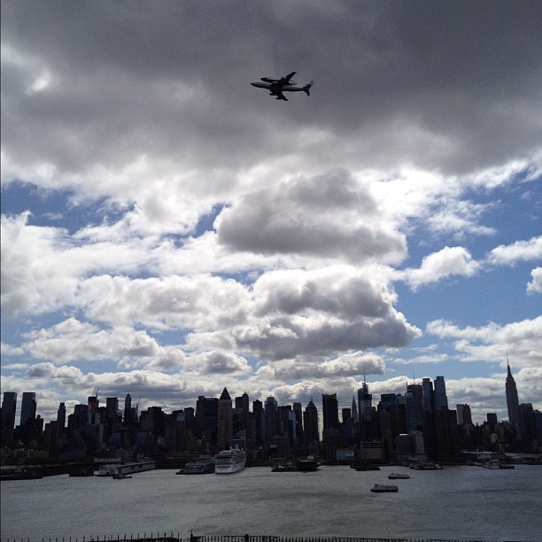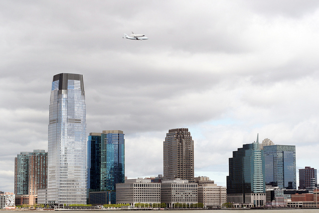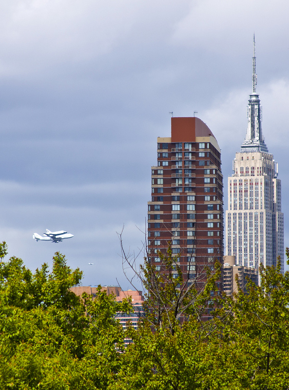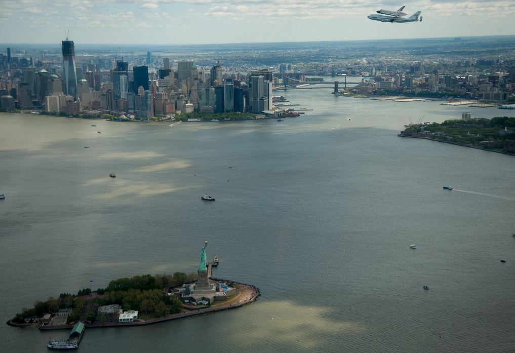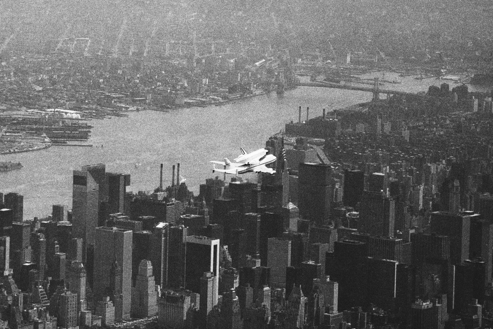 Το διαστημικό λεωφορείο Enterprise πετάει πάνω από την πόλη της Νέας Υόρκης με τη βοήθεια ενός μπόιγκ 747