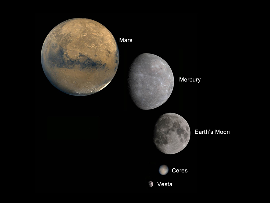 Ο αστεροειδής Vesta σε σύγκριση με το μέγεθος του Άρη, του Ερμή, της Σελήνης και του νάνου – πλανήτη Ceres