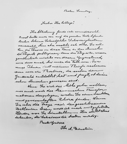 Μια από τις πολλές επιστολές που αντήλλαξαν ο Αϊνστάιν και ο Καραθεοδωρή, επισφραγίζοντας τη φιλία τους και την ανταλλαγή απόψεων μεταξύ τους.