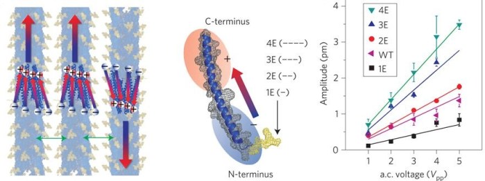 Οι ερευνητές έδειξαν σε νανοκλίμακα ότι αυτό το βιοφίλμ των ιών έχει και πιεζοηλεκτρικές ιδιότητες, οι οποίες βελτιώνονται ανάλογα με τη γενετική τροποποίηση του ιού, η οποία ενισχύει την τάση του. Οι επιστήμονες αύξησαν την ενεργειακή αποδοτικότητά του περαιτέρω, τοποθετώντας διαδοχικά στρώματα του φιλμ των ιών το ένα πάνω στο άλλο και διαπίστωσαν ότι 20 απανωτά φύλλα (φιλμ) παράγουν το ισχυρότερο πιεζοηλεκτρικό φαινόμενο.