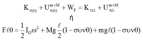 F ℓ – M g ημθ ℓ/2 – m g ημθ ℓ = ΙO dω/dt