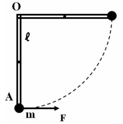Ομογενής και ισοπαχής δοκός (ΟΑ) μάζας Μ=6kg και μήκους ℓ=0,3m, μπορεί να περιστρέφεται χωρίς τριβές σε κατακόρυφο επίπεδο γύρω από οριζόντιο άξονα που περνά από το ένα άκρο της Ο. Στο άλλο άκρο Α υπάρχει στερεωμένη μικρή σφαίρα μάζας m=M/2=3kg.