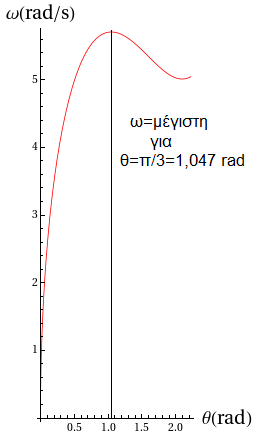 Στη συνέχεια ακολουθούν τα διαγράμματα της γωνιακής ταχύτητας και της γωνιακής επιτάχυνσης συναρτήσει της γωνίας θ.