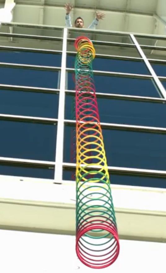 Ένα βίντεο υψηλής ταχύτητας αναδεικνύει την «άρνηση» κατακόρυφων ελατηρίων να υπακούσουν στο νόμο της βαρύτητας. Ελατήρια σε κατακόρυφη διεύθυνση αφήνονται να πέσουν ελεύθερα προς το έδαφος. Ενώ το πάνω τμήμα του ελατηρίου αρχίζει πέφτει κανονικά, το κατώτερο τμήμα παραμένει ακίνητο. Παρακολουθείστε το πείραμα: