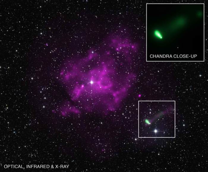 Σύμφωνα με τις παρατηρήσεις που έγιναν με 3 διαφορετικά τηλεσκόπια – το τηλεσκόπιο ακτίνων Χ Chandra της NASA, το XMM-Newton της ESA, και το ραδιοτηλεσκόπιο Parkes στην Αυστραλία – το αντικείμενο IGR J11014-6103 που εκπέμπει ακτινοβολία Χ φαίνεται να απομακρύνεται ταχύτατα από τα υπολείμματα ενός σουπερνόβα στον αστερισμό Carina, 30.000 έτη φωτός από τη Γη.