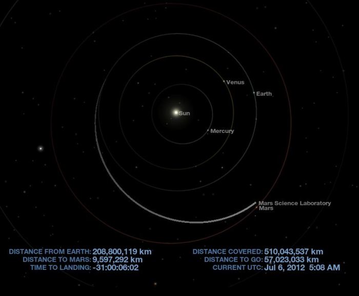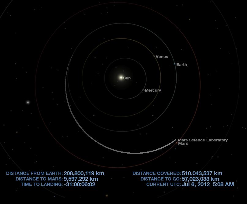 Χρησιμοποιώντας την προσομοίωση της NASA που βρίσκεται ΕΔΩ: solarsystem.nasa.gov , μπορούμε να βλέπουμε ανά πάσα στιγμή ποια είναι η θέση του διαστημικού σκάφους που μεταφέρει το Mars Science Laboratory «Curiosity».