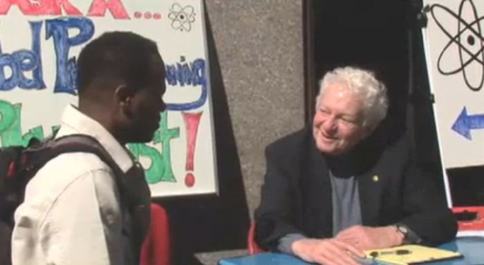 Ο νομπελίστας φυσικός Leon Μ. Lederman στήνει ένα τραπεζάκι σε πολυσύχναστο δρόμο της Νέας Υόρκης και απαντά στις ερωτήσεις του κόσμου!