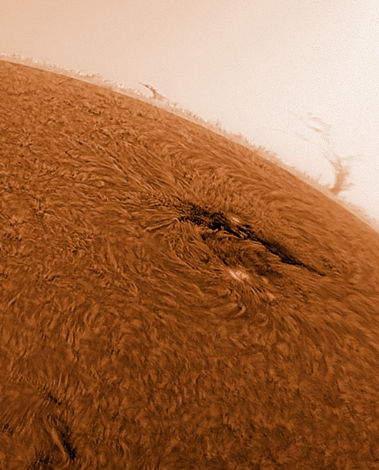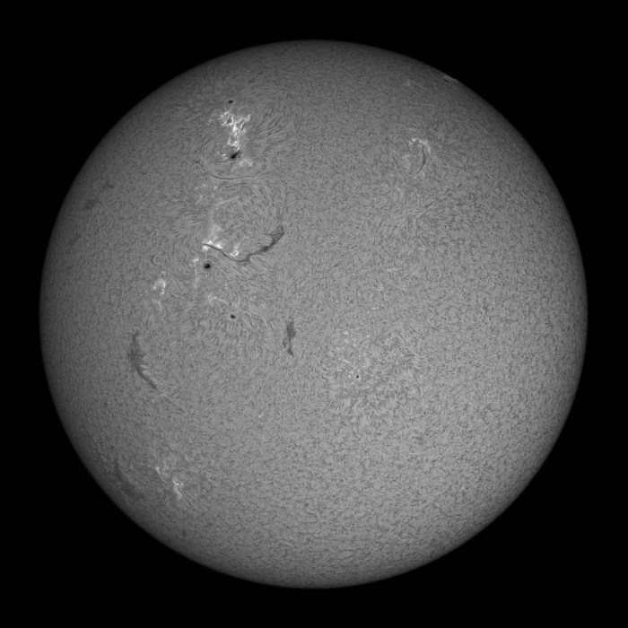 Ο ήλιος … όπως φαινόταν στις 29 Ιουλίου 2012, στο μήκος κύματος των 656,3 νανομέτρων, που αντιστοιχεί στην γραμμή H-άλφα του υδρογόνου (πρόκειται για το μήκος κύματος του φωτός που εκπέμπεται κατά την μετάβαση του ηλεκτρονίου του ατόμου υδρογόνου από n=3 σε n=2)