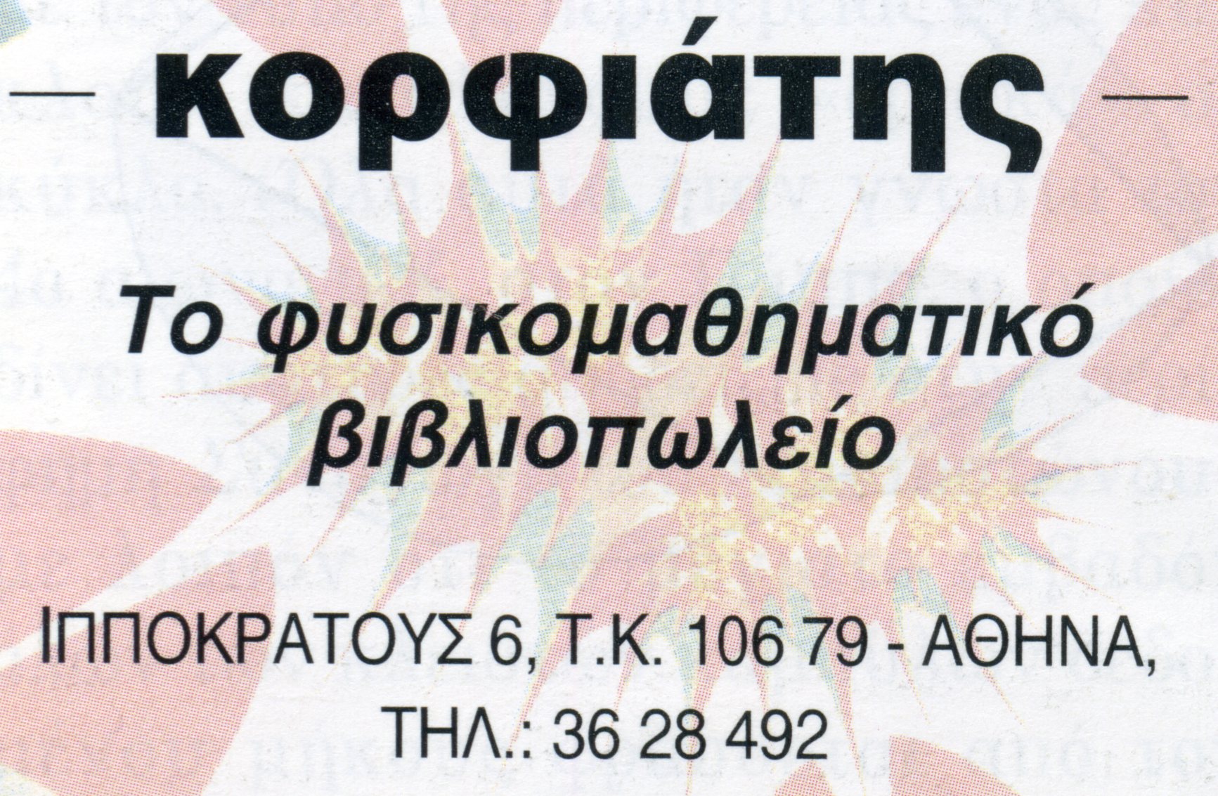 ….ένα πέρασμα από το φυσικομαθηματικό βιβλιοπωλείο του Κορφιάτη στην Ιπποκράτους (καλό είναι το ίντερνετ αλλά αξίζει να ξεφυλλίζεις που και που κανένα βιβλίο) …