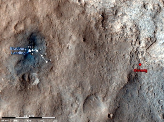 Χάρτης με την διαδρομή του Curiosity μέχρι και την 29η αρειανή ημέρα ή ισοδύναμα μέχρι την 4η Σεπτεμβρίου 2012