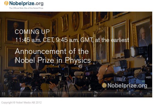 Παρακολουθείστε ζωντανά την ανακοίνωση της απονομής του βραβείου Nobel Φυσικής 2012 κάνοντας κλικ πάνω στην εικόνα ή πατώντας ΕΔΩ