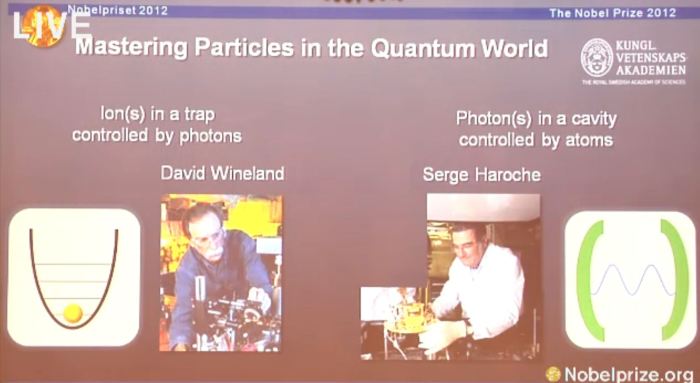 Ο Wineland από το Κολοράντο εργάστηκε σε παγίδες ιόντων, ενώ και ο Haroche από το Παρίσι πάνω στη σύλληψη φωτονίων. Το έργο τους αναμένεται να έχει εφαρμογές στους κβαντικούς υπολογιστές. Σύμφωνα με την επιτροπή των Nobel, το βραβείο απονέμεται «για τις πρωτοποριακές πειραματικές μεθόδους τους, που επιτρέπουν την μέτρηση και τον χειρισμό απομονωμένων κβαντικών συστημάτων (Διαβάστε περισσότερα ΕΔΩ)«.