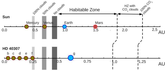 Ο πλανήτης HD40307g έχει επτά φορές τη μάζα της Γης, περιστρέφεται γύρω από το άστρο HD40307 (που ανήκει στον αστερισμό του Οκρίβαντα) σε απόσταση 0,6 αστρονομικές μονάδες με τροχιακή περίοδο 200 ημερών. Ο HD40307g βρίσκεται μέσα στην επονομαζόμενη «κατοικήσιμη ζώνη», δηλαδή σε τέτοια απόσταση από το μητρικό του άστρο που δημιουργεί συνθήκες κατάλληλες για την ανάπτυξη ζωής. Γύρω από το άστρο περιστρέφονται και άλλοι 5 πλανήτες σε πολύ κοντινή απόσταση, που δεν επιτρέπει την ύπαρξη νερού σε υγρή μορφή.