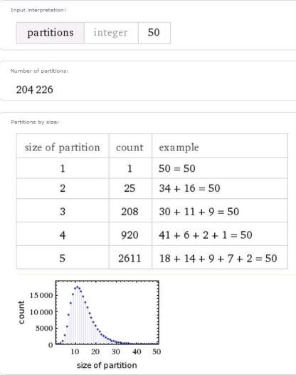 Το p(n) δίνει το πλήθους των τρόπων με τους οποίους μπορούμε να παραστήσουμε τον αριθμό n ως άθροισμα φυσικών αριθμών.
