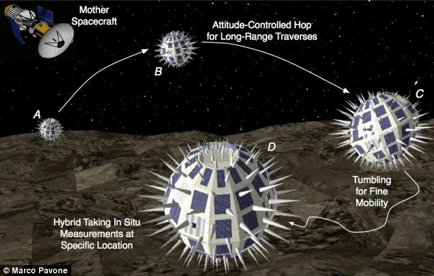 Το πιο ενδιαφέρον και «παράξενο» χαρακτηριστικό του νέου ρομπότ είναι ότι θα υπάρχουν τοποθετημένες πάνω σε αυτό δεκάδες ακίδες. Αυτές οι ακίδες θα του επιτρέπουν να κυλάει στην ανώμαλη και γεμάτη κρατήρες επιφάνεια του δορυφόρου. Με αυτόν τον τρόπο οι κατασκευαστές του πιστεύουν ότι δεν θα «κολλήσει» πουθενά, όπως έχει συμβεί με ορισμένα από τα ρομπότ στον Αρη, και έτσι θα καταφέρει να εξερευνήσει πλήρως τον δορυφόρο. Οι υπεύθυνοι της αποστολής έχουν ονομάσει το ρομπότ «σκαντζόχοιρο» εξαιτίας της όψης του.