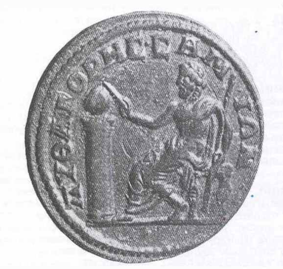 Όψη νομίσματος του 250 μ.Χ. όπου απεικονίζεται ο Πυθαγόρας ο Σάμιος