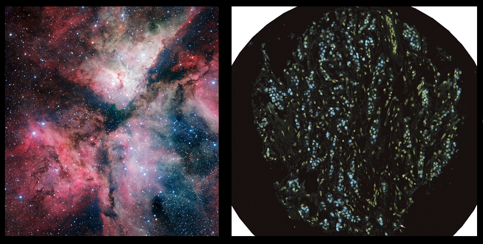 Αστρονόμοι και ογκολόγοι από το Πανεπιστήμιο Κέιμπριτζ ένωσαν τις δυνάμεις τους για να προσαρμοσθεί η τεχνολογία – η οποία κάποτε χρησιμοποιείτο για να διαχωριστούν τα μεμονωμένα άστρα από τους απομακρυσμένους γαλαξίες – για τον εντοπισμό των διαφορών σε καρκίνους του μαστού.