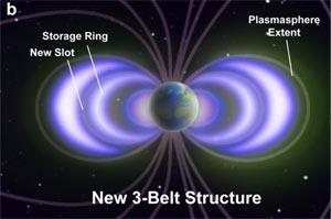 Στις 2 Σεπτεμβρίου, μόλις μερικές ημέρες μετά την εκτόξευσή τους, οι δορυφόροι Van Allen έκαναν την έκπληξη. Οι ερευνητές του Πανεπιστημίου του Κολοράντο στο Μπόλντερ, οι οποίοι έχουν αναπτύξει τα όργανα που φέρουν τα ερευνητικά σκάφη, είδαν να σχηματίζεται μπροστά στα μάτια τους μια τρίτη ζώνη ακτινοβολίας σε μια διαδικασία που δεν προβλέπεται από καμία θεωρία.