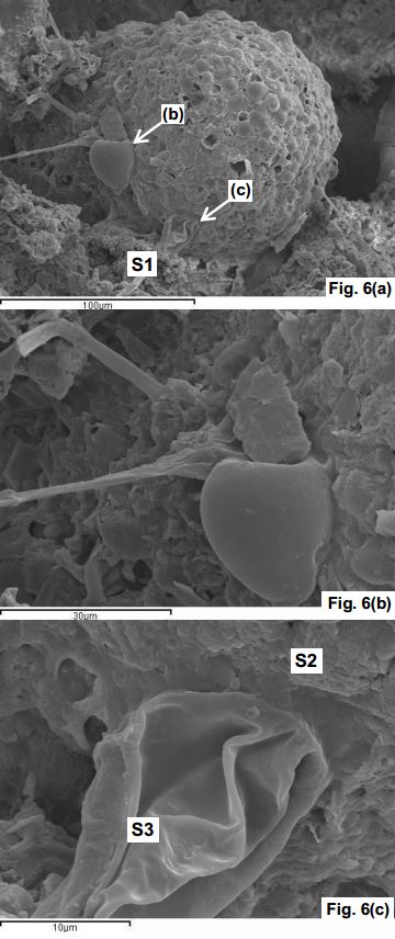 Ωστόσο η πιο εντυπωσιακή ανακάλυψη ήταν οι δομές εντός των πετρωμάτων όπως απεικονίστηκαν από μικροσκόπιο ηλεκτρονίων. Συγκεκριμένα μία από τις εικόνες φανερώνει ένα σύνθετο μικροαπολίθωμα πλούσιο σε άνθρακα, το οποίο έχει μήκος περίπου 100 μm και φέρει πολλές ομοιότητες με μία ομάδα θαλάσσιων δινομαστιγωτών φυκών που τώρα έχει εξαφανιστεί από τη Γη.