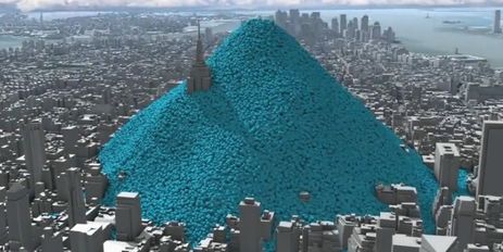 Εάν οι χημικές ιδιότητες του διοξειδίου του άνθρακα (CO2) ήταν διαφορετικές, εάν για παράδειγμα είχαν πυκνότητα, χρώμα και οσμή, σίγουρα ο κόσμος θα έδινε μεγαλύτερη προσοχή. Γι’ αυτόν ακριβώς τον λόγο, η ΜΚΟ Environmental Defense Fund (EDF) ζήτησε από μια εταιρεία γραφικών, την CarbonVisual, να απεικονίσει τις εκπομπές αερίων στη Νέα Υόρκη. Η εταιρεία κατάφερε να «συμπυκνώσει» τις εκπομπές σε μια μόνο περιοχή της πόλης, στο Μανχάταν. Το αποτέλεσμα είναι εντυπωσιακό. Κάθε τόνος CO2 απεικονίζεται με μια μπλε σφαίρα, η οποία καταλαμβάνει 534 m3 – περίπου 10 μέτρα σε διάμετρο. Επειτα από μια ώρα, μια πυραμίδα με περίπου 6.200 μπλε σφαίρες κάλυψε ένα οικοδομικό τετράγωνο. Μια ημέρα μετά, 150.000 σφαίρες έθαψαν μια ολόκληρη περιοχή. Μέσα σε έναν χρόνο ολόκληρο το Μανχάταν είχε καλυφθεί από περίπου 54 εκατ. μπλε μπάλες…