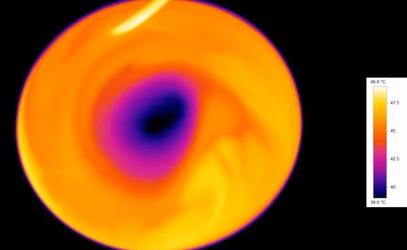 Ζεστό νερό που αναμειγνύεται με κρύο νερό, κινηματογραφημένο με θερμική κάμερα