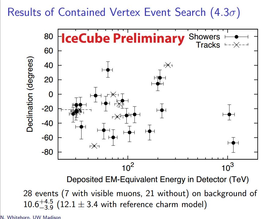 Διαφάνειες από την παρουσίαση του Nathan Whitehorn σχετικά με τα αποτελέσματα του IceCube events.icecube.wisc.edu