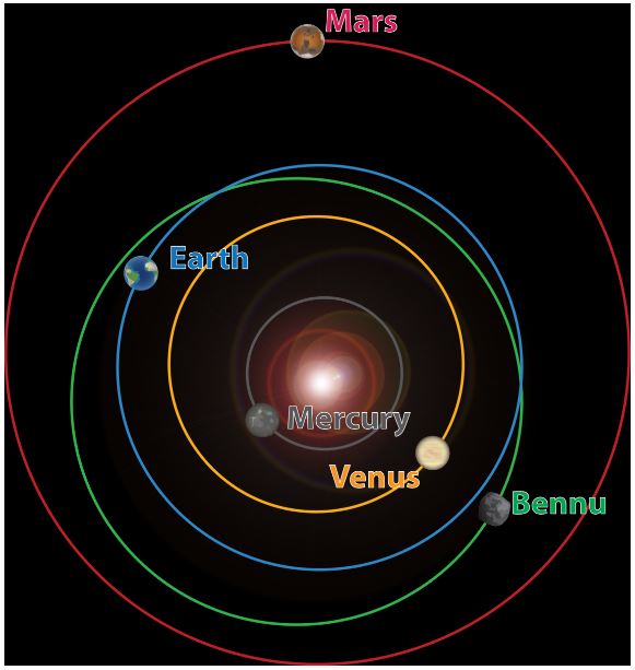 Το σκάφος θα φθάσει στον αστεροειδή Μπενού, ο οποίος θα κινείται με ταχύτητα άνω των 100.000 χιλιομέτρων την ώρα. Πρόκειται για ένα διαστημικό βράχο διαμέτρου μόνο 500 μέτρων, ο οποίος δημιουργήθηκε πριν από 4,5 δισεκατομμύρια χρόνια, σχεδόν ταυτόχρονα με τη Γη. Η τροχιά του τον κατατάσσει στα εν δυνάμει επικίνδυνα ουράνια σώματα να διασταυρωθούν κάποια στιγμή με τον πλανήτη μας (υπάρχει μια πιθανότητα στις 800 να πέσει πάνω στη Γη μετά από 166 χρόνια).