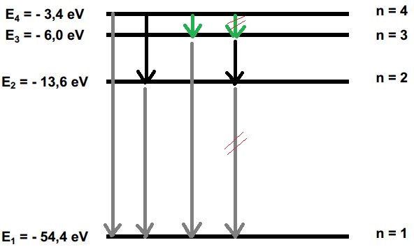Άσχετο με τη λύση, αλλά ενδιαφέρον: το φωτόνιο που εκπέμπεται στη μετάβαση 4->3 έχει μήκος κύματος περίπου 470 nm και βρίσκεται στο ορατό φάσμα και αντιστοιχεί στο πράσινο χρώμα (όπως στο σχήμα)