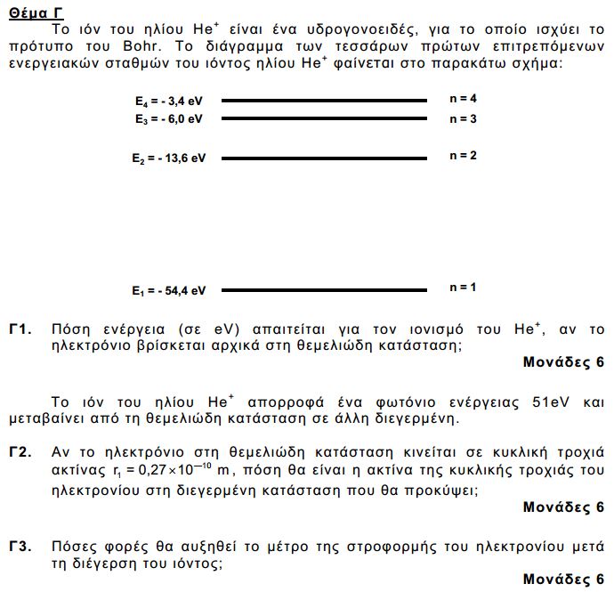 Γ3. L=n h/2π, οπότε για n=4 η στροφορμή τετραπλασιάζεται.