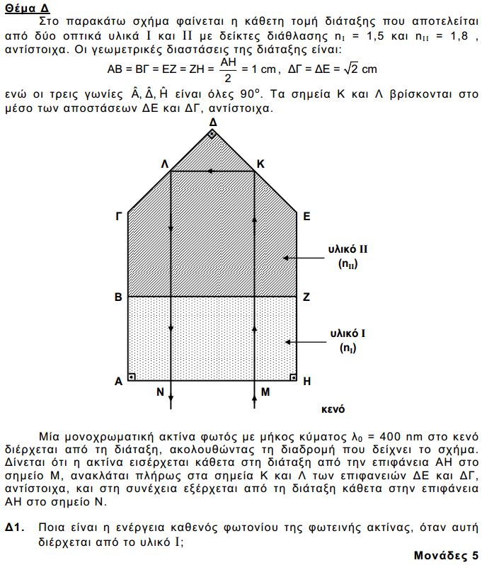 Δ4. O αριθμός των φωτονίων που αντιστοιχεί στην ενέργεια ΔΕ=20 J είναι N=ΔΕ/Εφωτ=4,04 ·1019φωτόνια.