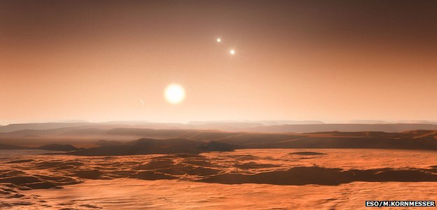 Αυτό σημαίνει ότι από την επιφάνεια των πλανητών θα μπορούσε κανείς να δει τρία αστέρια, δύο από τα οποία παραμένουν ορατά ακόμα και στη διάρκεια της νύχτας και λάμπουν περίπου με την ένταση της πανσελήνου στη Γη.