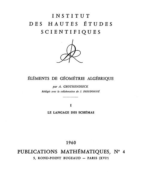 Ο Γκρόθεντικ σχεδίαζε ήδη την συγγραφή ενός βιβλίου με τίτλο «Eléments de Géometrie Algébrique», το οποίο θα περιείχε δεκατρία κεφάλαια