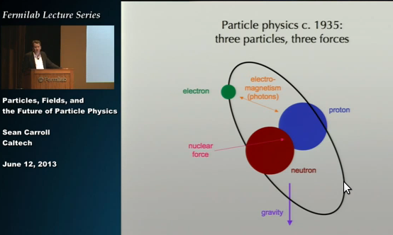 Η διάλεξη του Sean Carroll από το CalTech , στο Fermilab στις 12 Ιουλίου 2013, με τίτλο «Σωματίδια, Πεδία και το μέλλον της Φυσικής» :