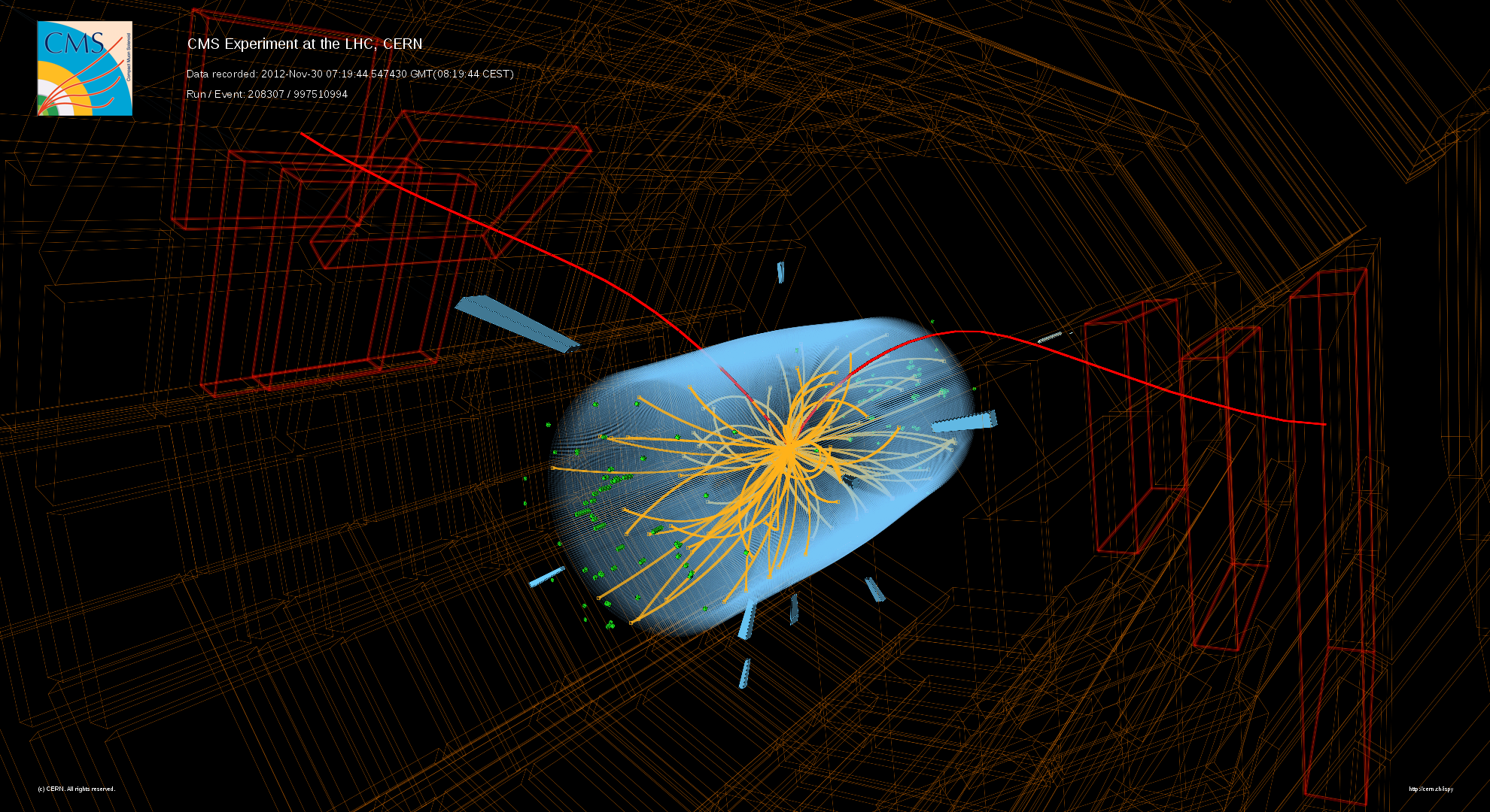 Ένα γεγονός Bs → μμ καταγεγραμένο από τον ανιχνευτή CMS το 2012. Παράχθηκε από τη σύγκρουση δεσμών πρωτονίων στα 8 TeV