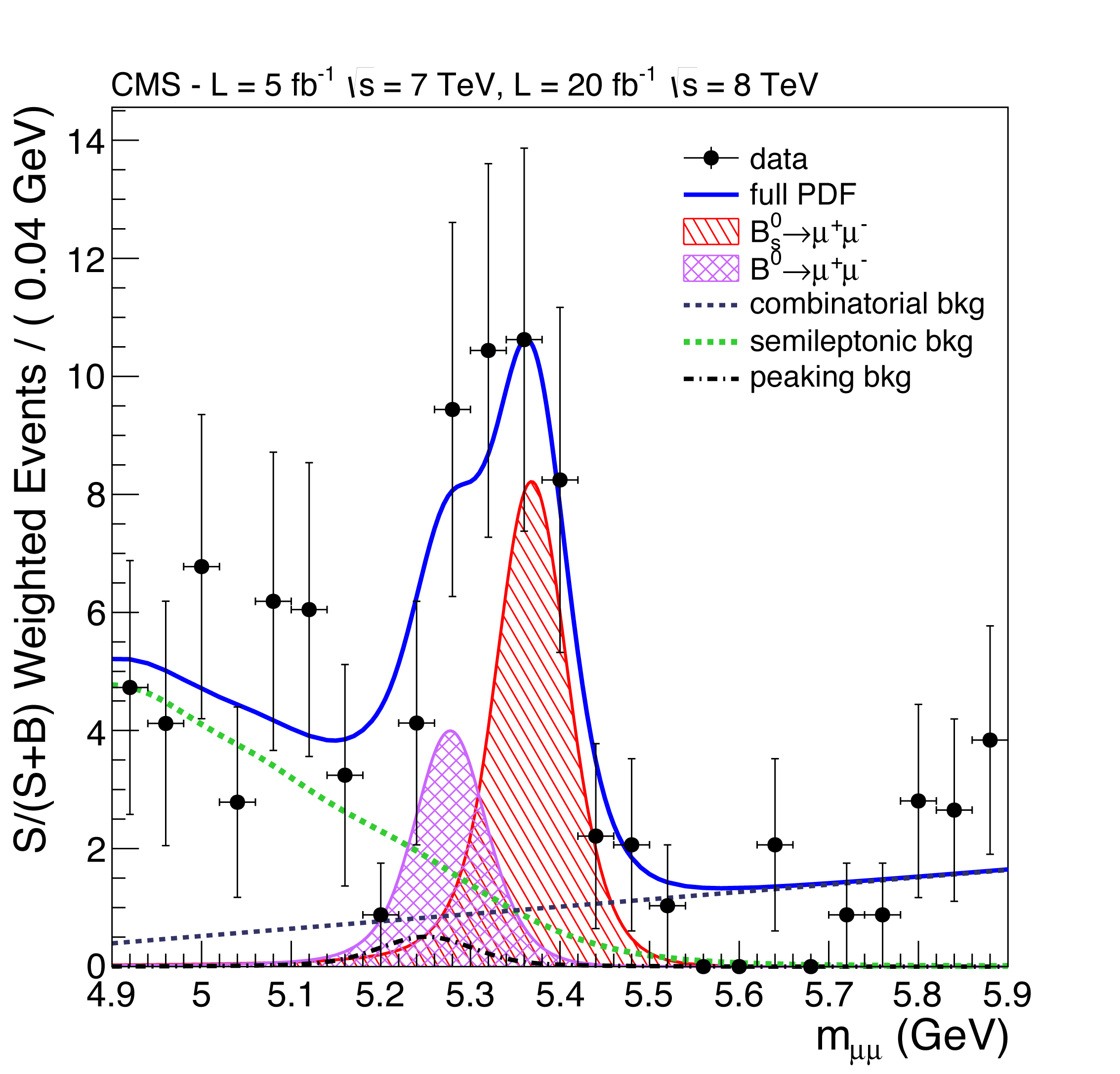 Η νέα αυτή διάσπαση, δεν είναι άλλη από τη διάσπαση μεσονίων Bs σε ζεύγη μιονίων. Η διάσπαση αυτή σύμφωνα με το Καθιερωμένο Πρότυπο, συμβαίνει περίπου τρεις φορές για κάθε δισεκατομμύριο μεσόνια Bs. Οποιαδήποτε απόκλιση από την τιμή αυτή, θα άφηνε ανοιχτό το δρόμο για Φυσική πέραν του Καθιερωμένου Προτύπου. Όμως, σύμφωνα με τα στοιχεία από το πείραμα CMS, η συμφωνία θεωρίας και πειράματος είναι εντυπωσιακή και με ακρίβεια πολλών δεκαδικών ψηφίων και πιθανότητα για στατιστικό σφάλμα μικρότερη από 1 στις 100.000!