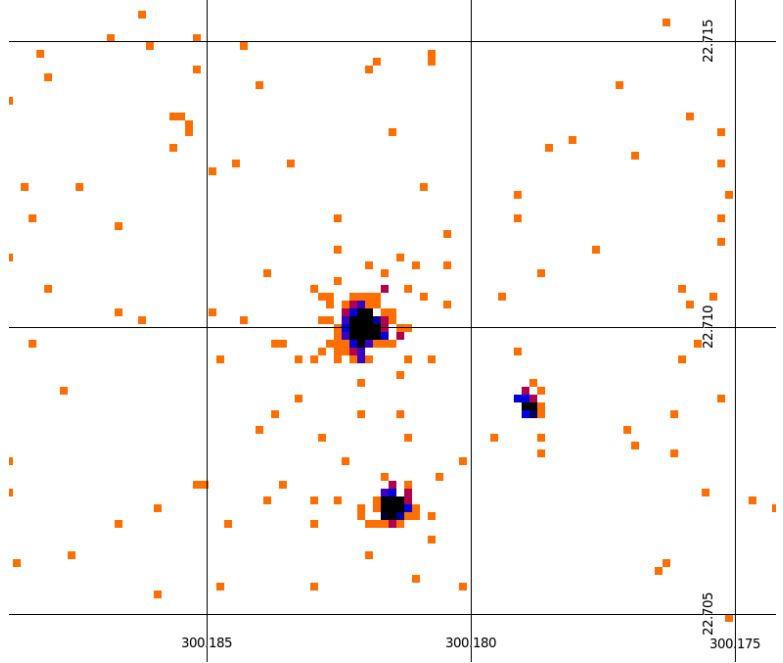 Εικόνα ακτίνων X του συστήματος ΗD 189733. Το άστρο ΗD 189733 (πάνω αριστερά), ο εξωπλανήτης HD 189733B (δεξιά) και ένα αντικείμενο στο υπόβαθορ (κάτω)