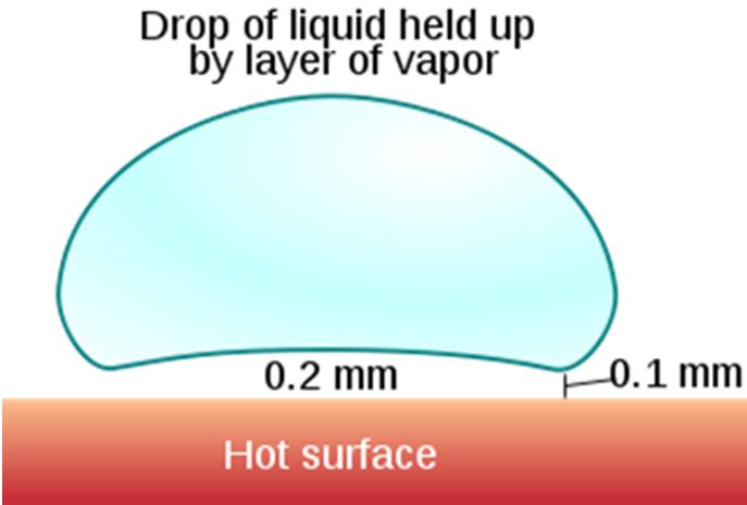 Η δημιουργία ενός στρώματος ατμού μεταξύ σταγόνας και ματιού κουζίνας δρα ως θερμικός μονωτής, έτσι ώστε η σταγόνα να μην εξατμίζεται αμέσως