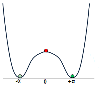 Το συμμετρικό σημείο στο 0 είναι ενεργειακά ασταθές. Ευσταθείς καταστάσεις αντιστοιχούν στα σημεία .