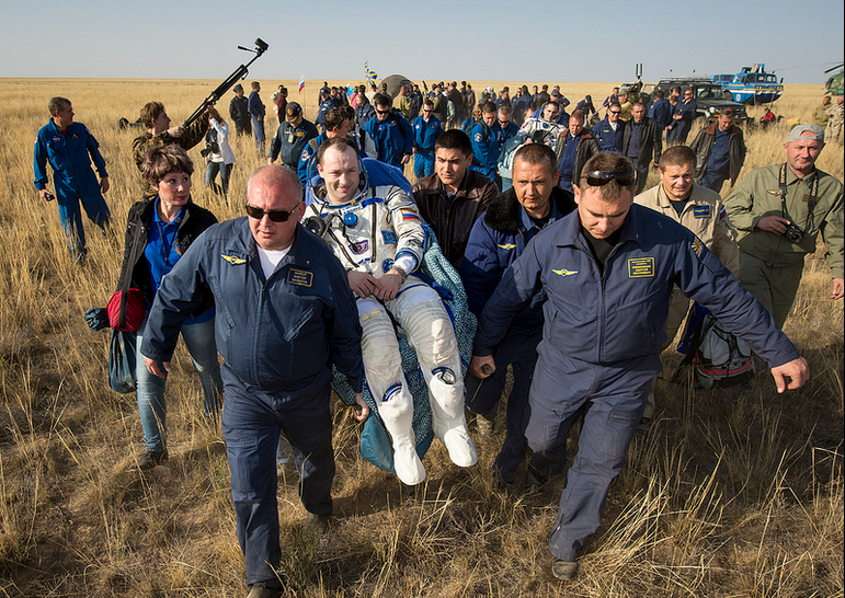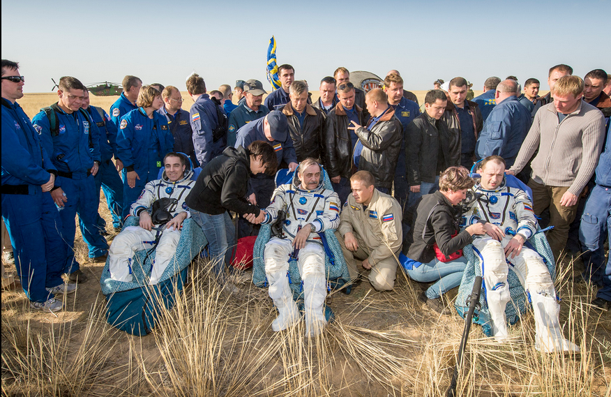 Η επιστροφή των αστροναυτών του Διαστημικού Σταθμού, μετά την απόσυρση των διαστημικών λεωφορείων, θυμίζει την επιστροφή του πρώτου ανθρώπου που ταξίδεψε στο διάστημα πριν από 52 χρόνια, του Γιούρι Γκαγκάριν. (Η διαφορά έγκειται στο ότι ο Γκαγκάριν δεν προσγειώθηκε μαζί με την κάψουλα, αλλά χρησιμοποίησε το εκτινασσόμενο κάθισμά του σε ύψος 7 χιλιομέτρων, και μετά από ελεύθερη πτώση χρησιμοποίησε το αλεξίπτωτό του).