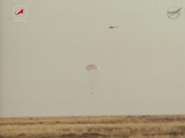 Η ρωσική κάψουλα Soyuz TMA-08M προσγειώνεται στο Kazakhstan. Μεταφέρει από τον Διεθνή Διαστημικό Σταθμό τον διοικητή Pavel Vinogradov, τον μηχανικό πτήσης Alexander Misurkin της Ρωσικής Ομοσπονδιακής Υπηρεσίας Διαστήματος (Roscosmos) καθώς και τον Αμερικανό Chris Cassidy της NASA, οι οποίοι παρέμειναν στο διάστημα 166 μέρες στα πλαίσια της αποστολής νούμερο 36.