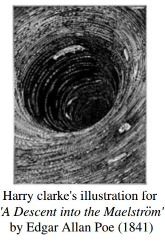 ‘The edge of the whirl was represented by a broad belt of gleaming spray; but no particle of this slipped into the mouth of the terrific funnel . . . ’
